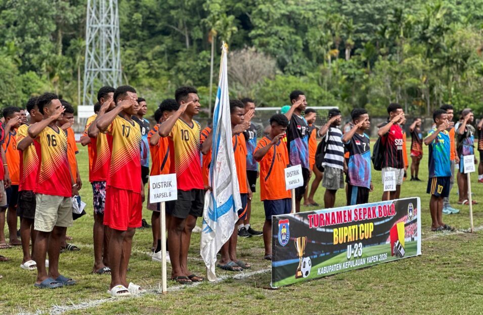 Buletinkita.com, SERUI – Wakil Bupati Kepulauan Yapen, Roi Palunga, resmi membuka Turnamen Sepak Bola U-23 Bupati Cup 2026 di Stadion Marora, Serui, Jumat (06/02/2026), dalam rangka menyemarakkan HUT Kabupaten Kepulauan Yapen.